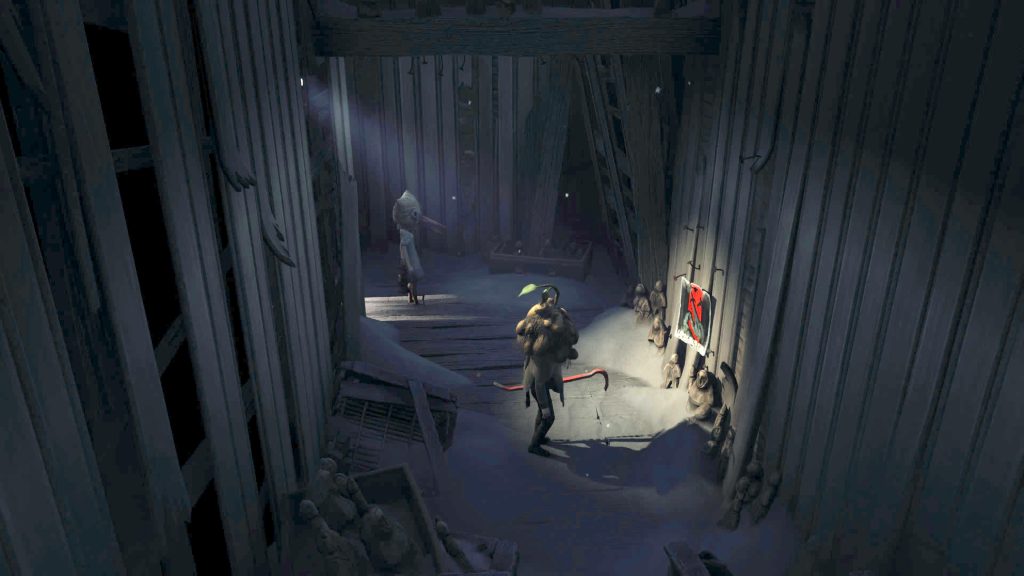 - 角色設計部分,承繼了小小夢魘系列的象徵頭套,並加入更黑暗獵奇的敵人風格,以及偶爾冒出來的一兩舉簡短對話,讓整體感受更加詭異奇幻。