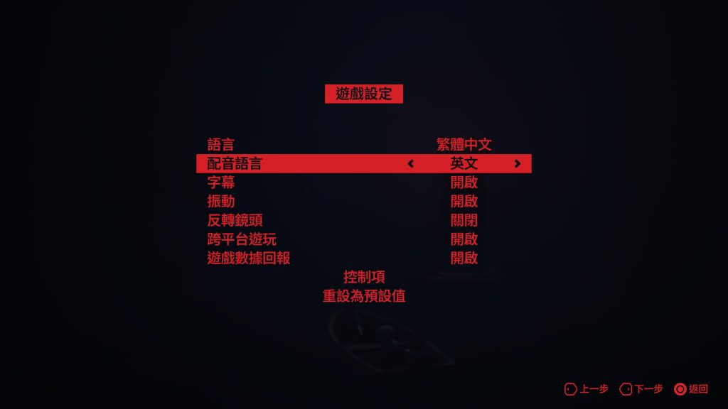 本作有中文配音,若想要調回英文配音,在這這個畫面選擇即可;也可以在這裡開啟跨平台遊玩。