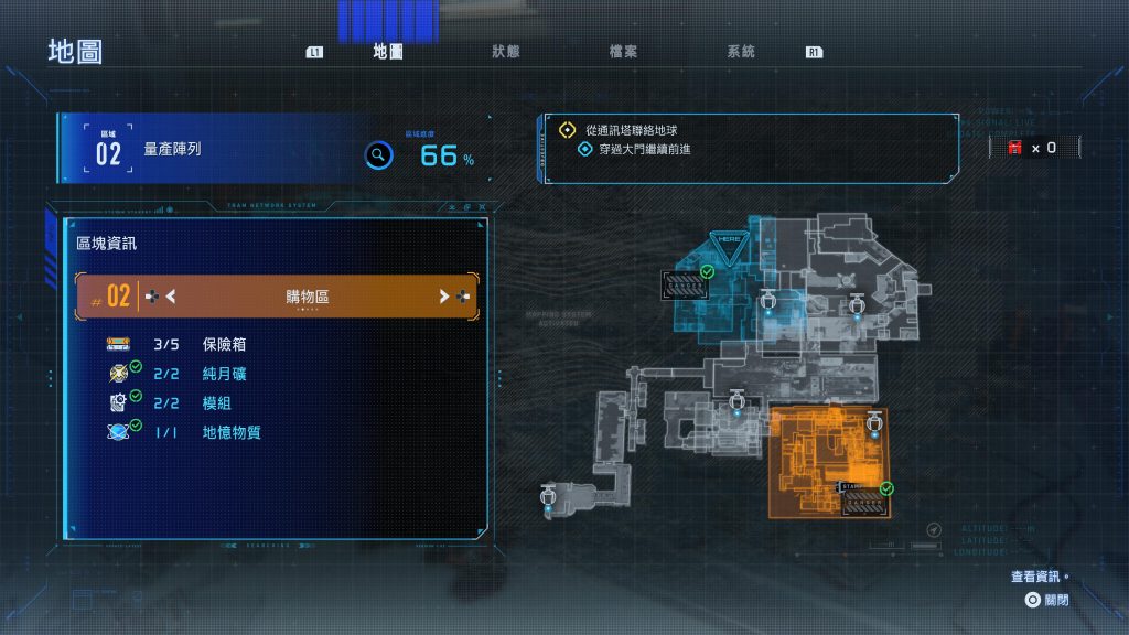 - 地圖進度:每張地圖都會提示你的完成百分比,以及未拿到的道具,可以多加利用。