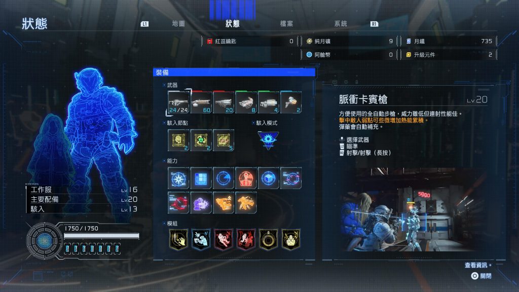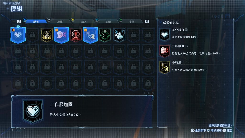- 模組系統:模組則是針對各種戰鬥的額外效果加成,可以自由選配。