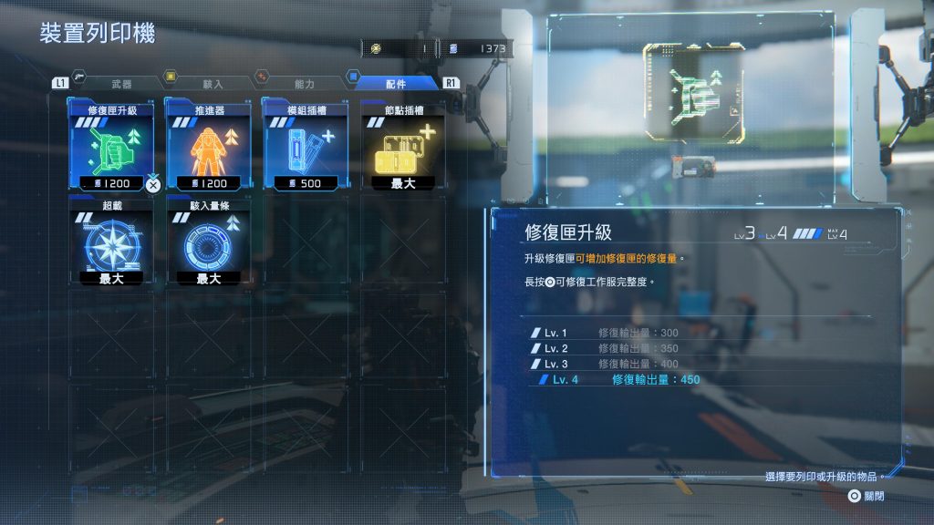 - 裝置列印機:可以升級各類武器和學習動作技能。
