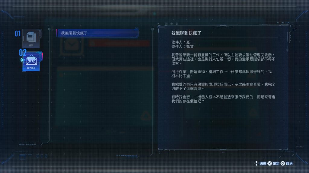 - 同時透過好懂易讀的故事碎片來補充背後的故事,在科幻作品裡算是非常好上手的,不會有太多要記住的專有名詞,強烈建議大家多停下腳步看看文本,會對世界觀有更深的沉浸感。