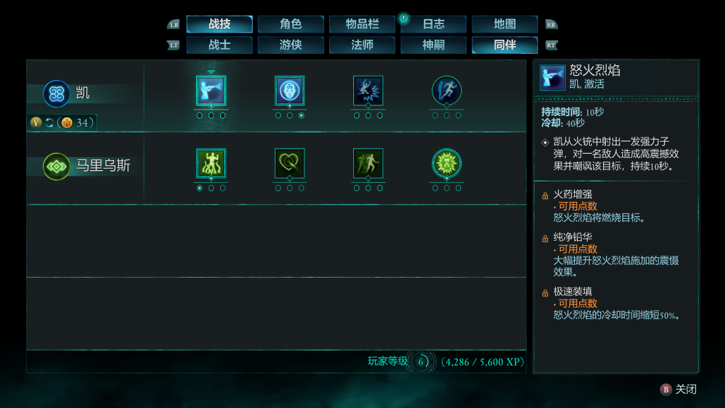 夥伴除了有自己的技能樹可供配點