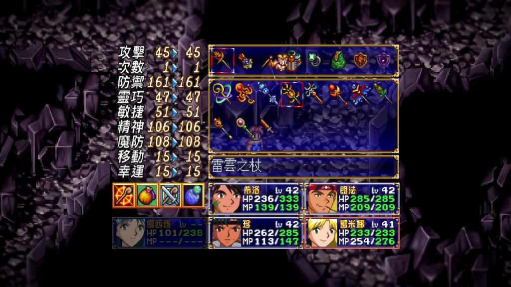 一代的法杖可以直接透過道具欄點選使用,且不會消耗MP,當缺屬性攻擊或是沒有MP時,是一個不錯的妙計。