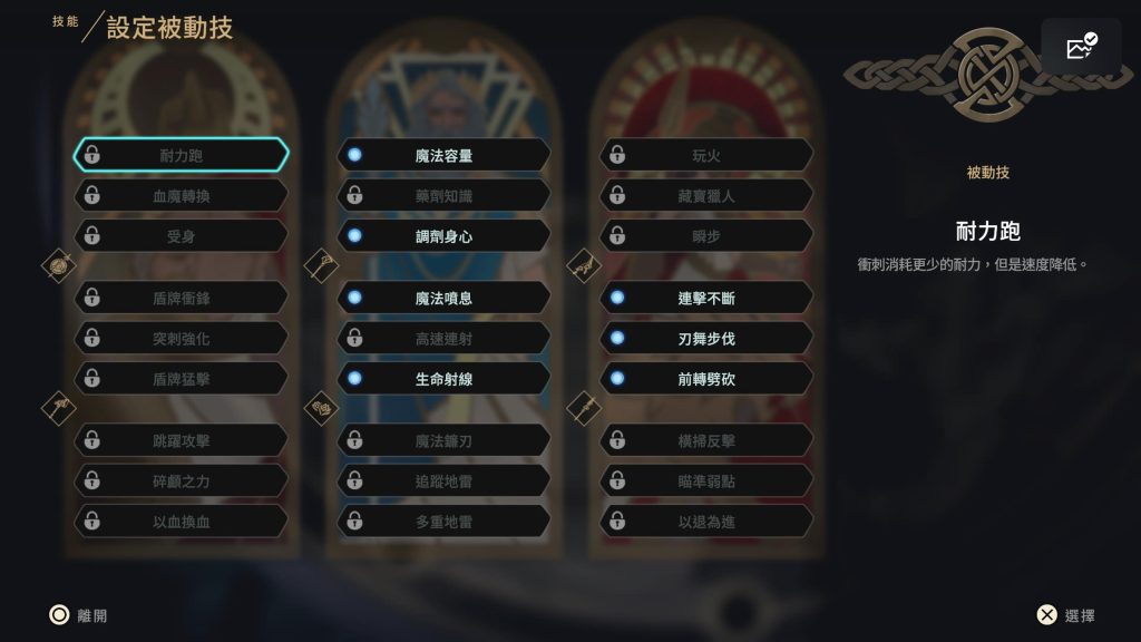 被動技,大部分都在最內圈,強化基礎素質與基礎動作