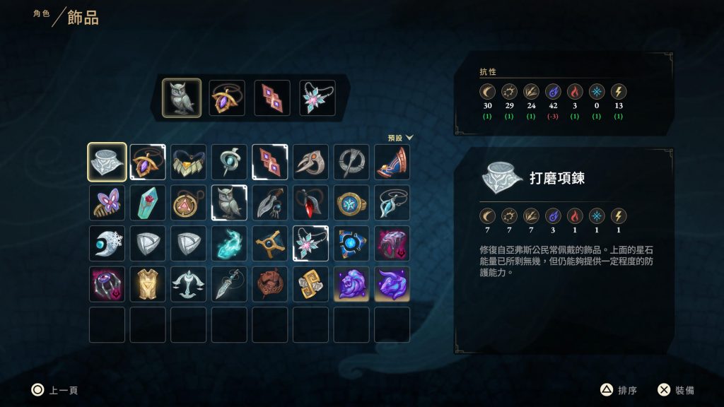 大部分飾品都是各類減傷,某些則額外有特殊效果。